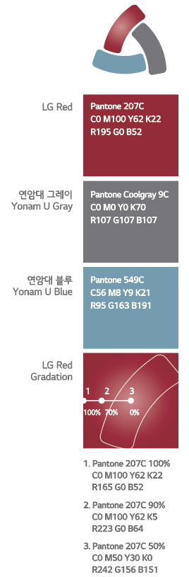 - The LG Red gradation means the response to the infinitely-changing world, Yonam U Gray refers to the young talents of Yonam Institute of Technology set to conquer the world, and Yonam U Blue means field-centered job training.